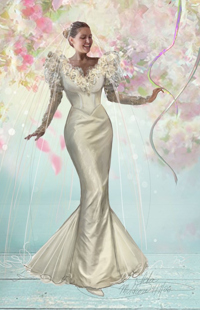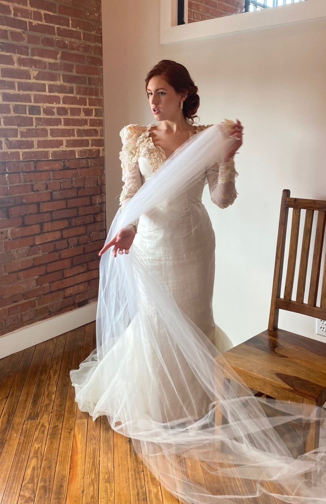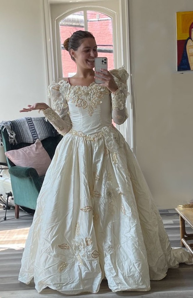 Original vintage wedding gown worn by Pearl’s mother on her own wedding day in 1992.